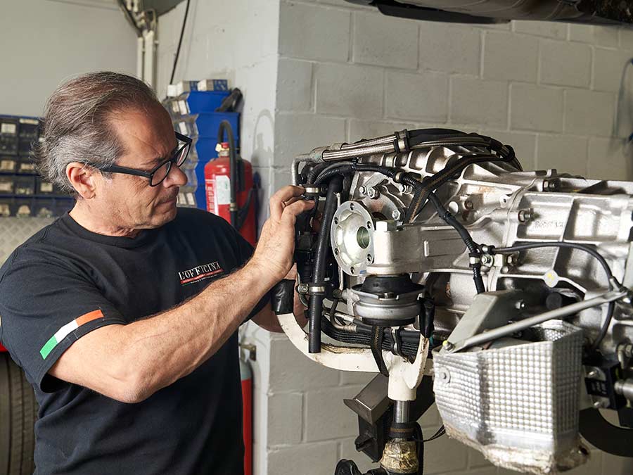 Donner à votre voiture de collection l’attention et le service qu’elle mérite, la préparer pour une saison d’événements et de rallyes réussie ou faire inspecter votre véhicule par un véritable expert… pour tout cela, L’Officina est votre partenaire. Nous savons mieux que quiconque ce que votre voiture représente pour vous et nous comprenons parfaitement ce que vous attendez de nous. Toutes les réparations mécaniques et électriques sont effectuées dans notre propre atelier afin de garantir le plus haut niveau de qualité.