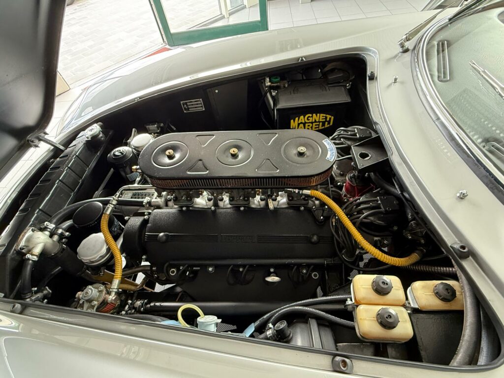 Sous son long capot signé Pininfarina et Scaglietti se cache le légendaire V12 Colombo de 3,3 litres, développant environ 280 chevaux, associé à une boîte manuelle à cinq rapports en position transaxle, gage d’un équilibre idéal. Capable d’atteindre plus de 260 km/h, la 275 GTB allie puissance, souplesse et une sonorité d’une pureté inimitable.
